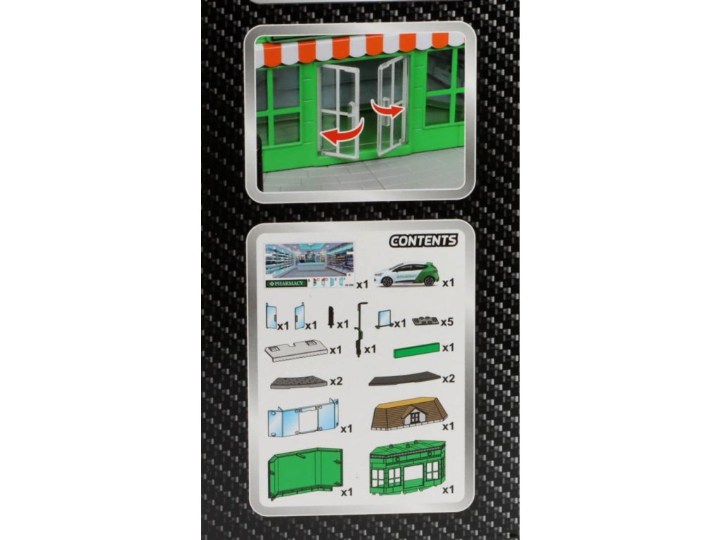 Renault Clio + Stavebnice diorama Ambulance Pharmacy stanice 1:43 - Bburago Renault Clio - Stavebnice KIT s modelem
