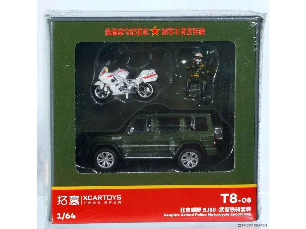 Sada Baic BJ80 + Firgurka + Motorka Policie 1:64 - Xcartoys Sada 3 ks. - kovový model
