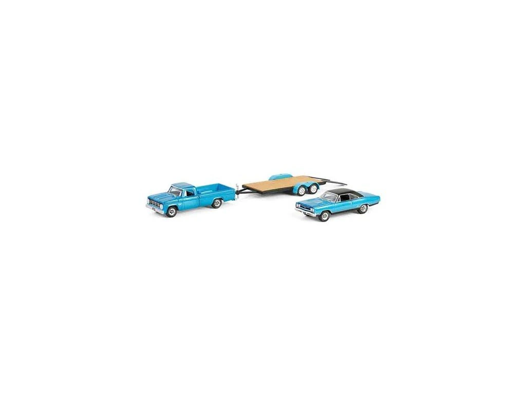 Sada: Dodge D-200 1967 + Plymouth GTX 1969 + Flatbed Trailer 1:64 - GreenLight Sada: Dodge+Plymouth+ Flatbed Trailer - kovový model