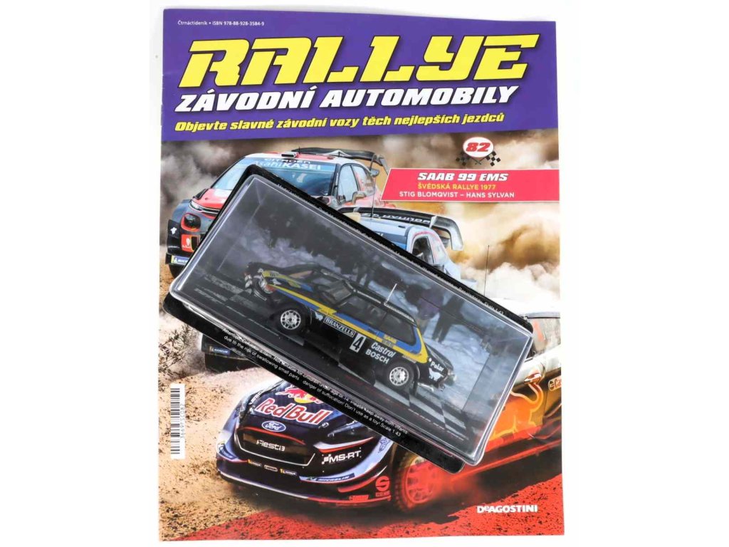 Saab 99 EMS Winner Rally Sweden 1977 S. Blomqvist - H. Sylvarr 1:43- Rallye automobily časopis s modelem #82 Saab 99 - kovový model