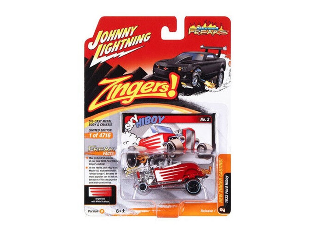 Ford Hiboy #3 1932 červený 1:64 - Johnny Lightning Ford Hiboy No. 3 - sběratelský model autá 1/64