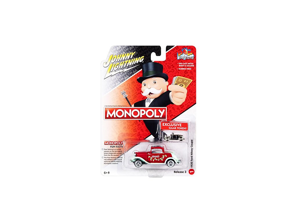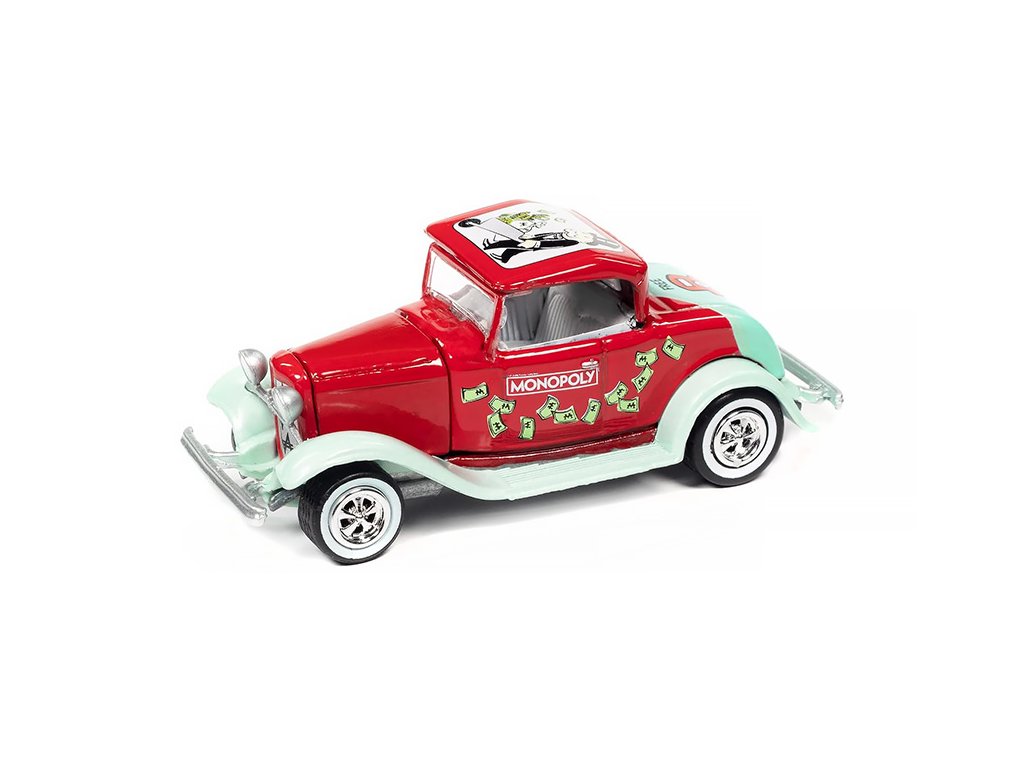 Ford Hiboy Coupe 1932 Monopoly + figurka pro hru 1:64 - Johnny Lightning Ford Hiboy Coupe 1932 + Exclusive Game Token Monopoly - sběratelský model auta