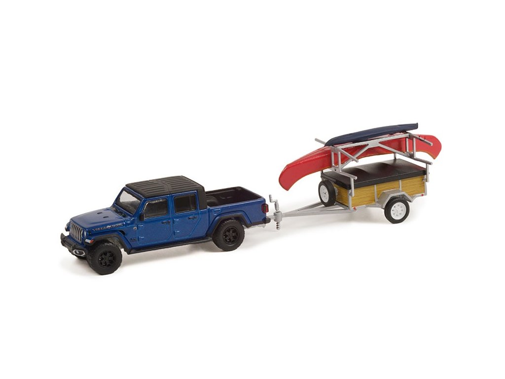 Jeep Gladiator Texas Trail & Canoe Trailer & Canoe Rack 1:64 - GreenLight Jeep Gladiator Texas Trail & Canoe Trailer & Canoe Rack - kovový model auta 1/64