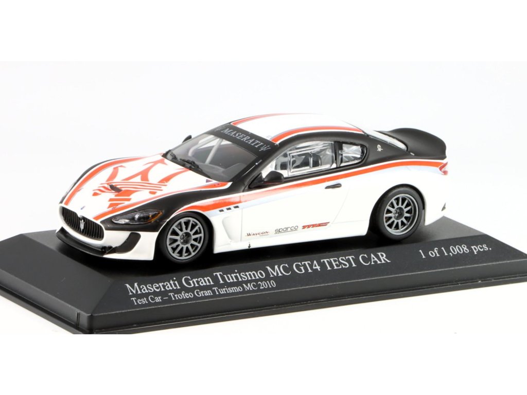 Maserati Gram Turismo MC GT4 Test Car 2010 1:43 - Minichamps Maserati Gram Turismo - kovový model