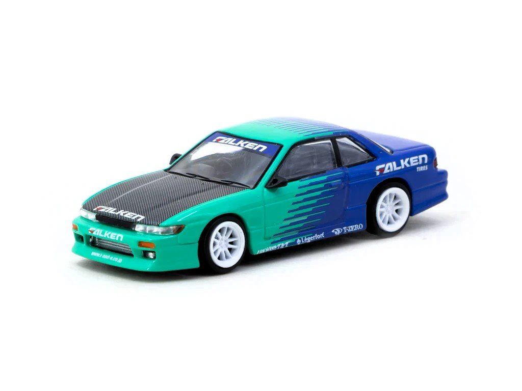 Nissan Silvia S13 Vertex modrá/zelená 1:64 - TARMAC Models Nissan Silvia - kovový model