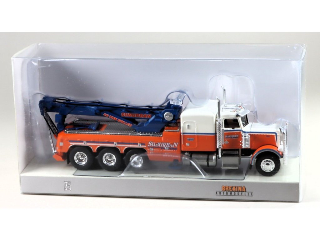 Peterbilt 359 Odtahový Vůz Suburban oranžová/modrá 1:87 - Brekina Peterbilt 359 - sběratelský model