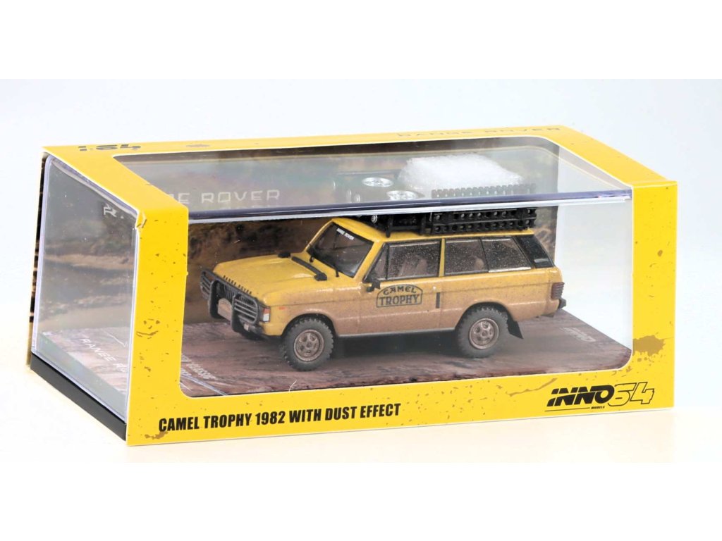 Range Rover Classic Camel Trophy 1982 zaprášený 1:64 - INNO Models Land Rover Classic - kovový model