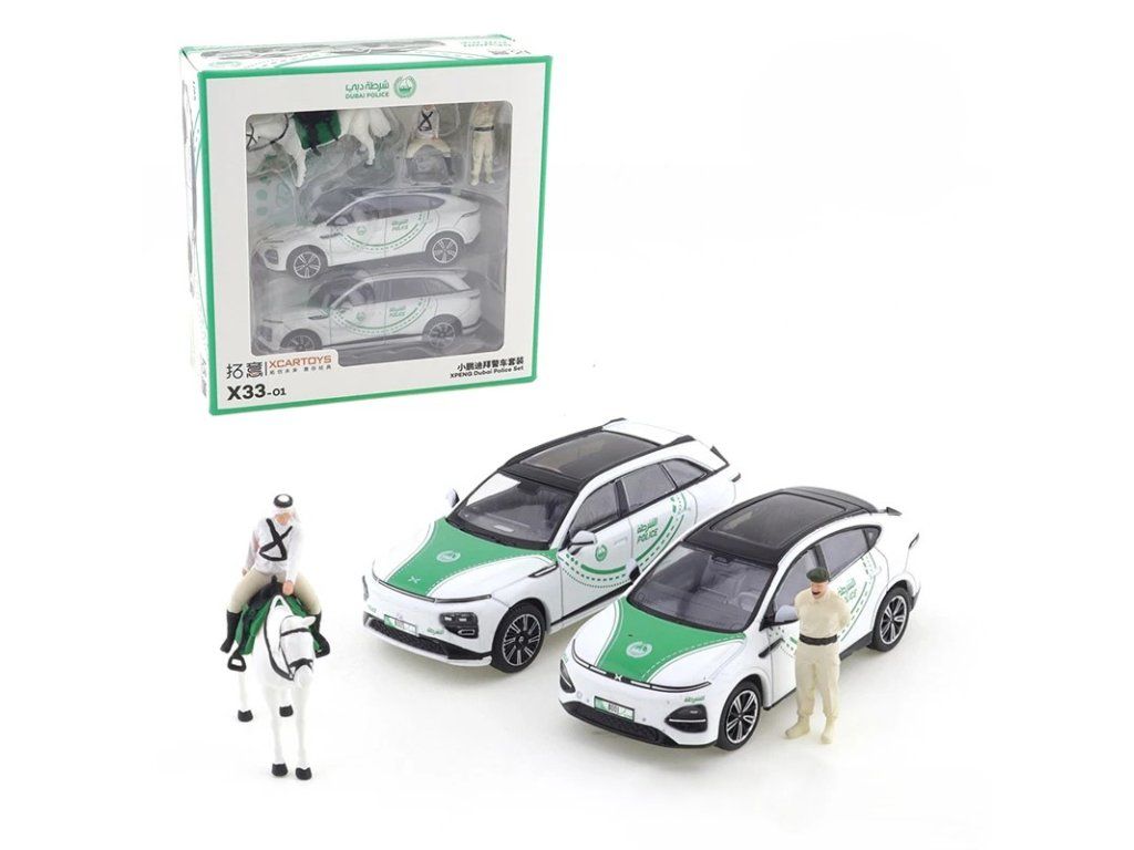 Sada Xpeng G6 + 2 Firgurky Policie Dubai 1:64 - Xcartoys Sada 5ks - kovový model