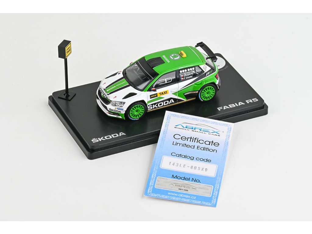 Škoda Fabia III R5 (2015) 1:43 - R5 TAXI 1:43 Limitovaná edice - Abrex Limitovaná edice - vyrobeno pouze 300 kusů! - kovový model