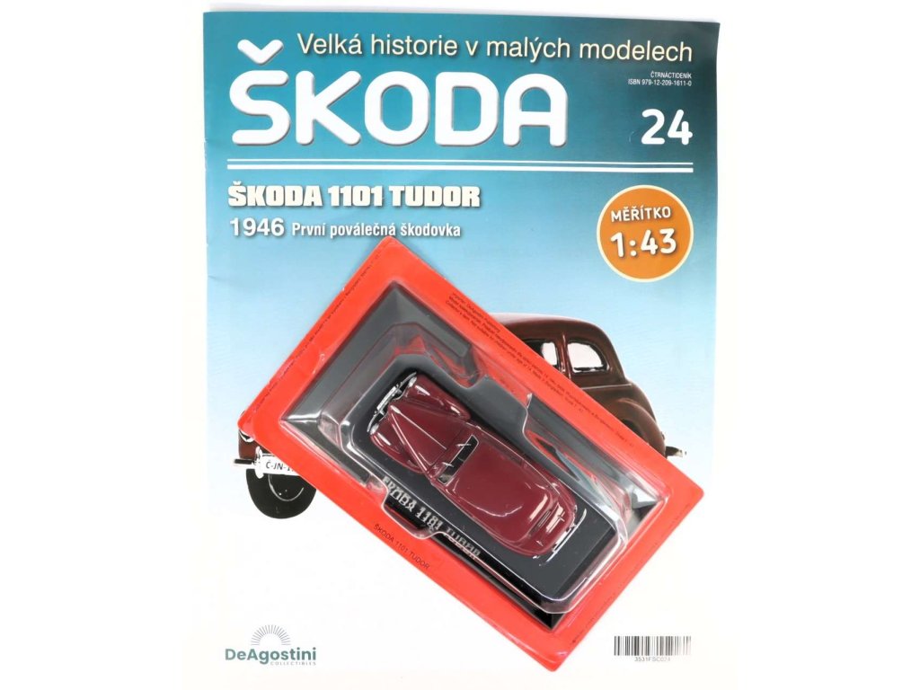 Škoda 1101 Tudor 1946 1:43 - ŠKODA DeAgostini časopis s modelem #24 Škoda 1101 - kovový model