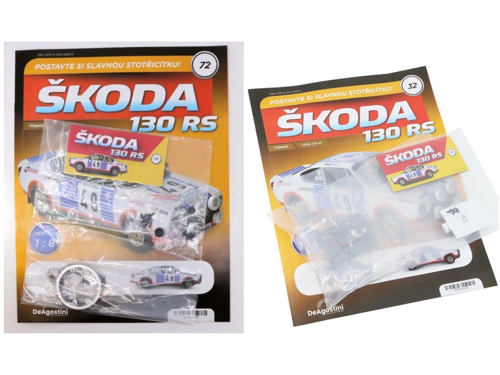 Škoda 130 RS 1:8 - sada časopisů #32 a #72 se stavebnicí Škoda 130 RS 1:8 - časopisy se stavebnicí