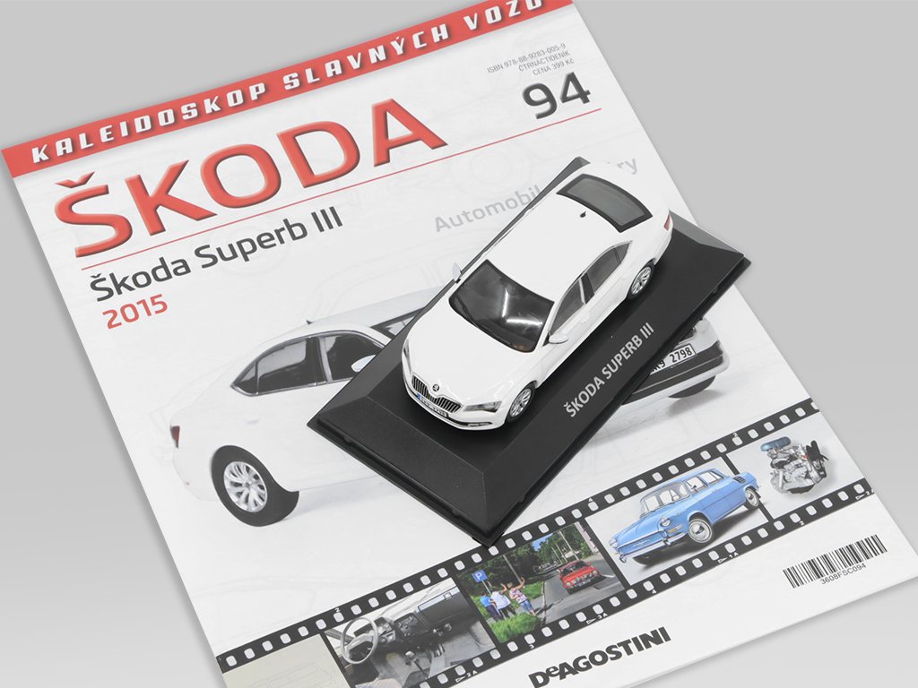 Škoda Superb III 2015 1:43 - Kaleidoskop slavných vozů časopis s modelem #94 Škoda Superb 3 - kovový model auta 1/43