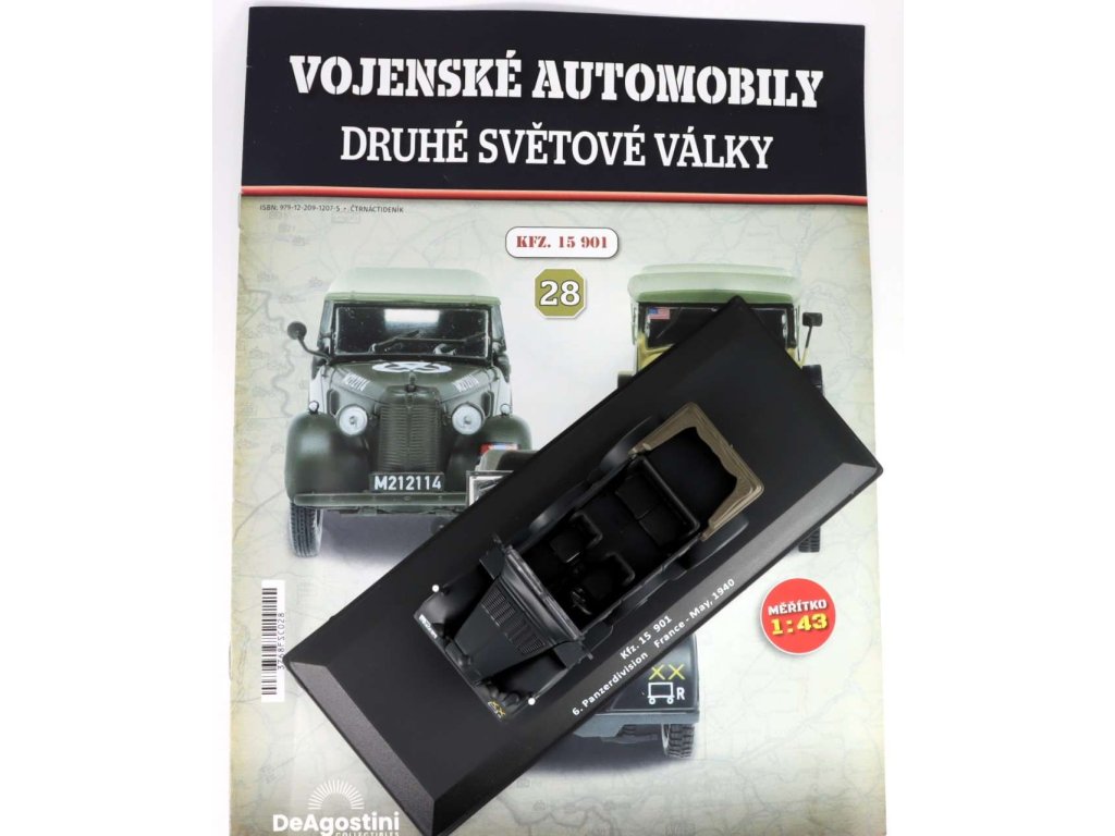 Horch 901 Kfz. 15 6. Panzerdivision 1940 1:43 - časopis Vojenské automobily s modelem #28 Horch 901 - kovový model